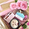 Dárkovou krabičku vystlanou přírodním lýkem vonící po růžích, sypanou růžovými květy a ovázanou saténovou mašlí